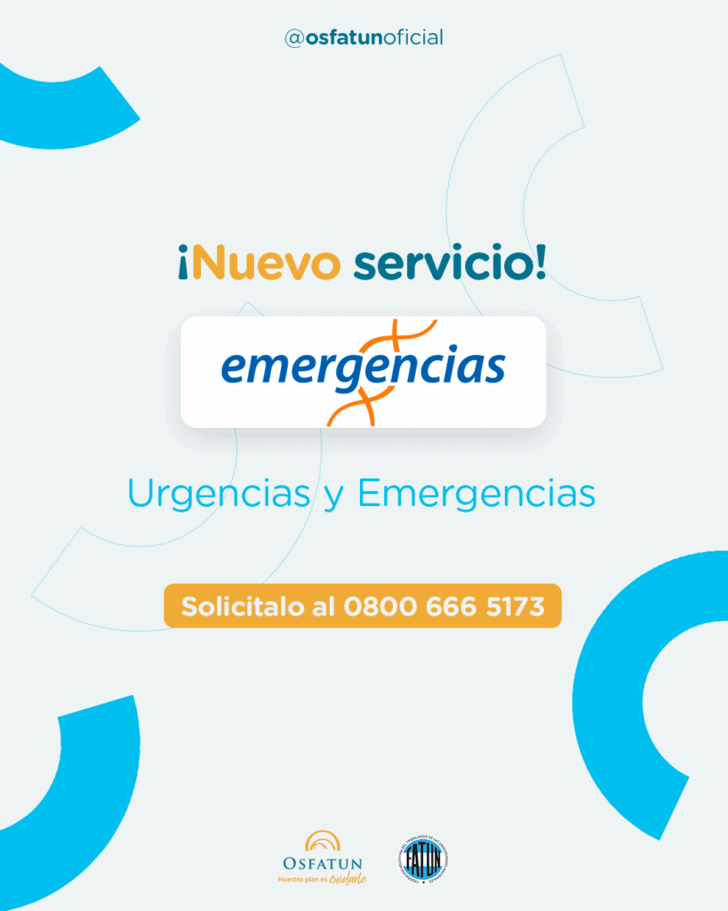 Desde el 10 de junio, en OSFATUN te brindaremos una atención más integral, completa y accesible, a través del nuevo servicio nacional de Emergencias y Urgencias para todos nuestros planes. Gracias a una alianza con la prestigiosa empresa «EMERGENCIAS» te estaremos cuidando más y mejor para tu tranquilidad y la de tu familia. El servicio estará disponible las 24 horas del […]