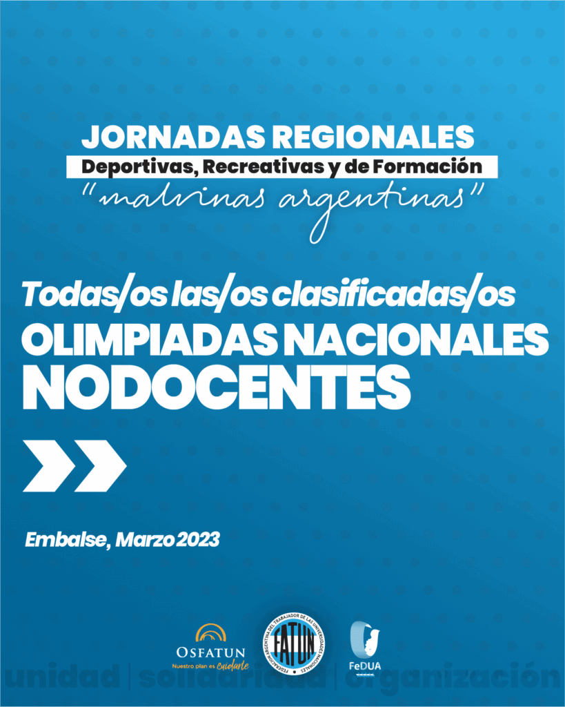 Ya finalizadas las Jornadas Deportivas, Recreativas y de Formación «Malvinas Argentinas», compartimos todas/os las/os clasificadas/os a los #OlimpiadasNODOCENTES que se desarrollarán en la localidad de Embalse, provincia de Córdoba. ¡Felicitaciones a todas/os las/os Compañeras/os! Las/os esperamos en marzo. #juegosNODOCENTES #jornadasdeportivas #jornadasdeportivasnodocentes #cordoba #embalse #nodocentes #fatun #universidades #merkisconduccion