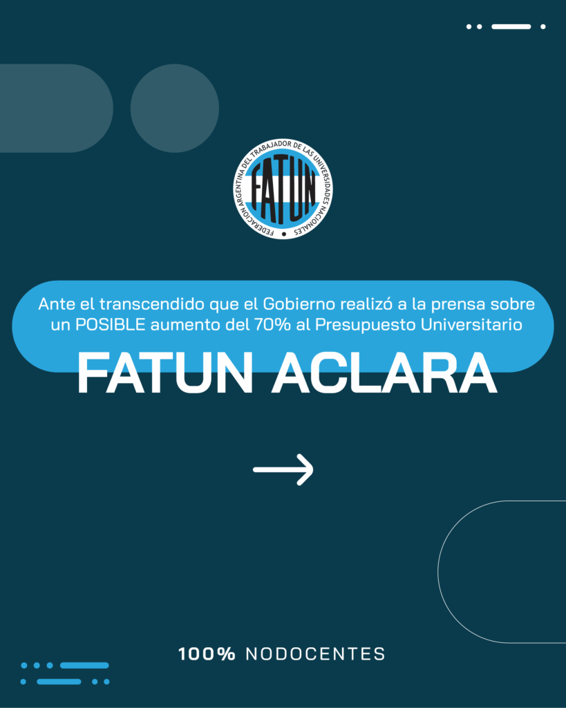 Ante el transcendido que el Gobierno realizó a la prensa sobre un POSIBLE aumento del 70% al Presupuesto Universitario, FATUN ACLARA ESTA INFORMACIÓN Y SEÑALA: 1. El Gobierno vislumbra el impacto del paro que plantean todos los Sindicatos de las UUNN y por eso tergiversa la INFORMACIÓN para confundir a la sociedad. 2. Busca […]