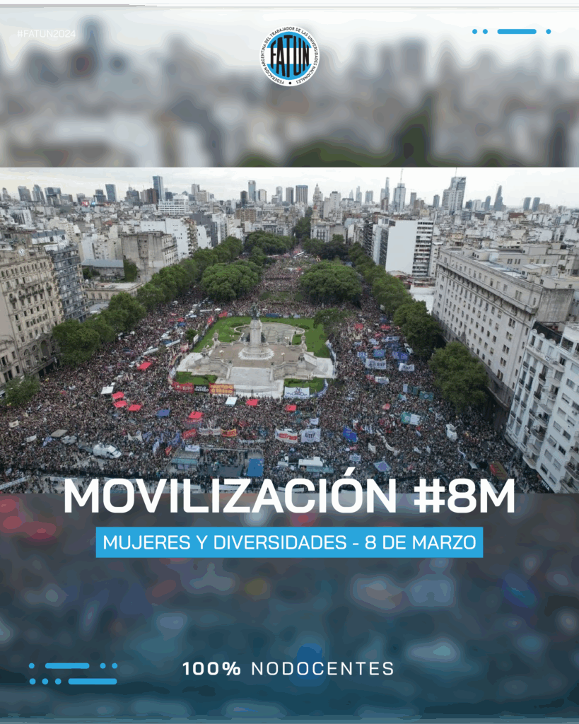 En el día de hoy, 8 de marzo, se llevó a cabo en todo el país el Paro Internacional Feminista. Fueron convocados desde la FATUN todos los Sindicatos de bases adheridos a adoptar las medidas necesarias y más adecuadas con el propósito de visibilizar el reclamo de las mujeres y diversidades trabajadoras, garantizando y apoyando […]