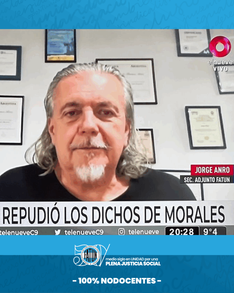 El Cro. Jorge Anró, Secretario Adjunto de la FATUN, fue entrevistado por Canal 9 y por Radio AM750. Además, el diario Página 12 publicó la entrevista radial en la cual el Cro. Anró desmintió al precandidato a vicepresidente de Juntos por el Cambio y exigió que pida disculpas públicas ya que Morales acusó a los […]