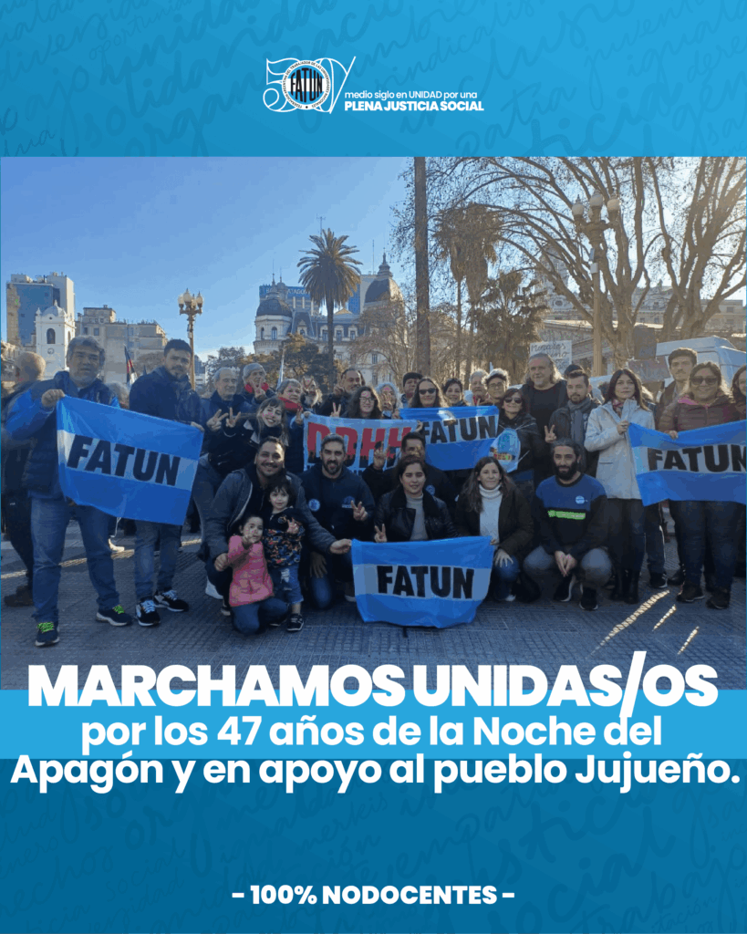En el mediodía de hoy se llevó a cabo una conferencia de prensa de frente a los hechos acontecidos en Jujuy. En ella, por indicación del Secretario General de la FATUN, Cro. Walter Merkis, participó el Secretario Adjunto de nuestra Federación, Cro. Jorge Anró. Además, por la Mesa Ejecutiva Nacional, acompañaron las compañeras Mercedes Maffeo, […]
