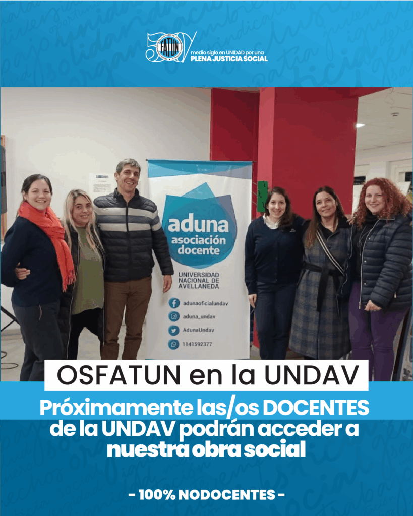 OSFATUN en la UNDAV. Próximamente las/os DOCENTES de la UNDAV podrán acceder a nuestra obra social.