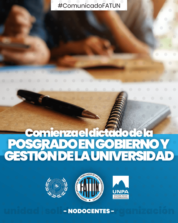 En el mes de abril del corriente año se dará inicio al cursado de la Diplomatura en Gobierno y Gestión de la Universidad, primer ciclo del Posgrado del mismo nombre. El dictado del Posgrado, que constituye un hecho inédito en la vida de las organizaciones sindicales, toda vez que no solo exige una gran cuota […]