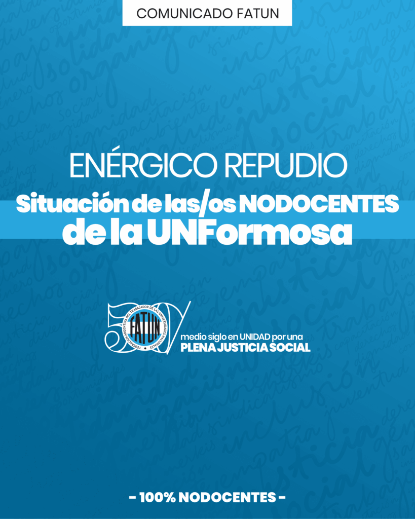 La Mesa Ejecutiva de la FATUN expresa su más enérgico repudio a las acciones administrativas ejecutadas por el Rector de la Universidad Nacional de Formosa, referida al incumplimiento de los incrementos salariales acordados en Paritarias Generales correspondientes a los haberes de marzo del año en curso. Asimismo manifesta que se denunciará esta retención indebida ante […]