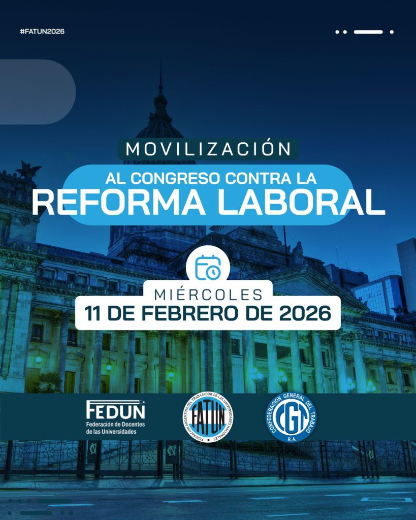 La FATUN, convoca para el día de mañana a cada una/o de las/os NODOCENTES en todo el país, a movilizar en cada una de sus ciudades en defensa de los derechos de las/os trabajadoras/es argentinos y para expresar el ferviente rechazo a la Ley de Reforma Laboral. Asimismo informamos que el punto de encuentro para […]