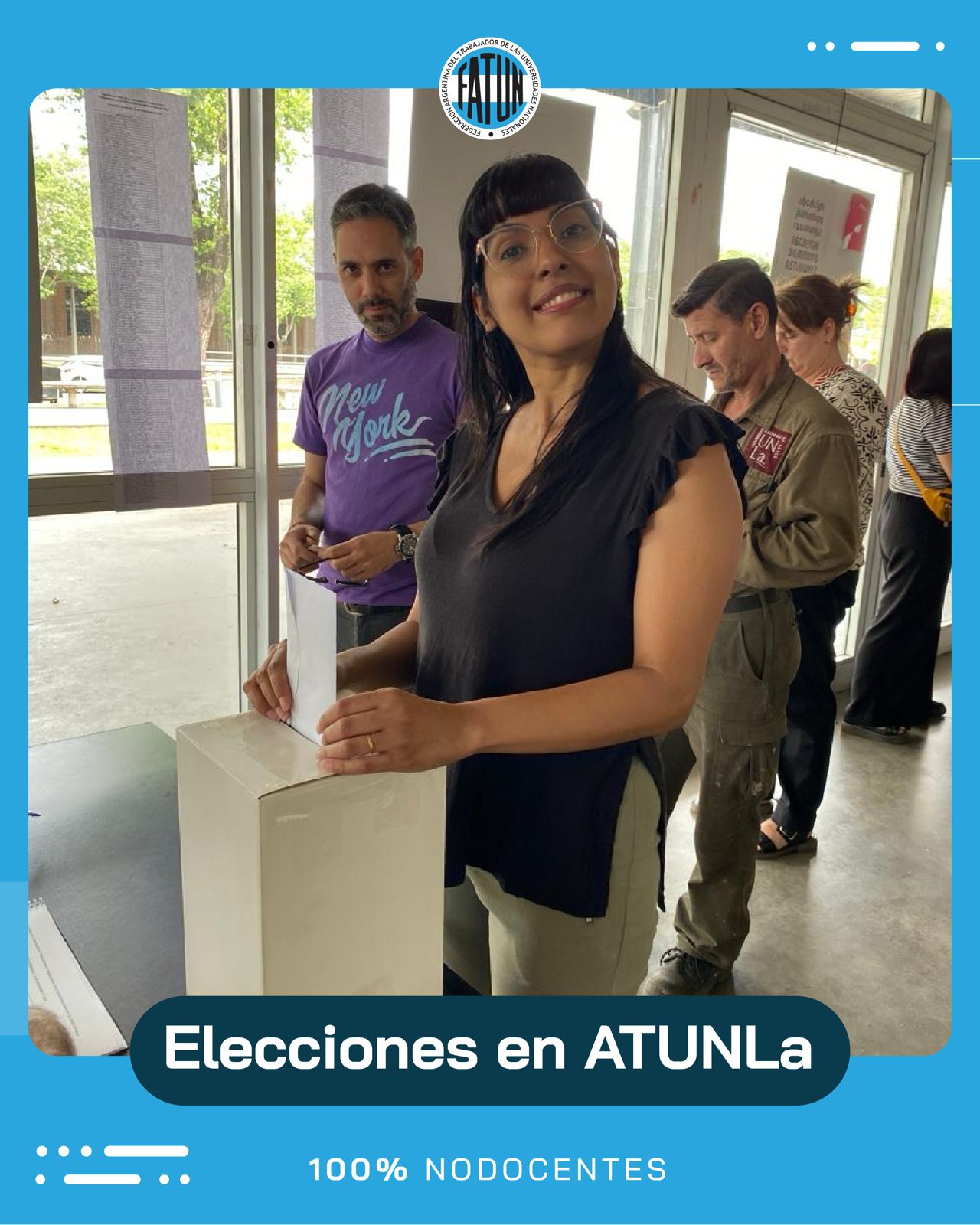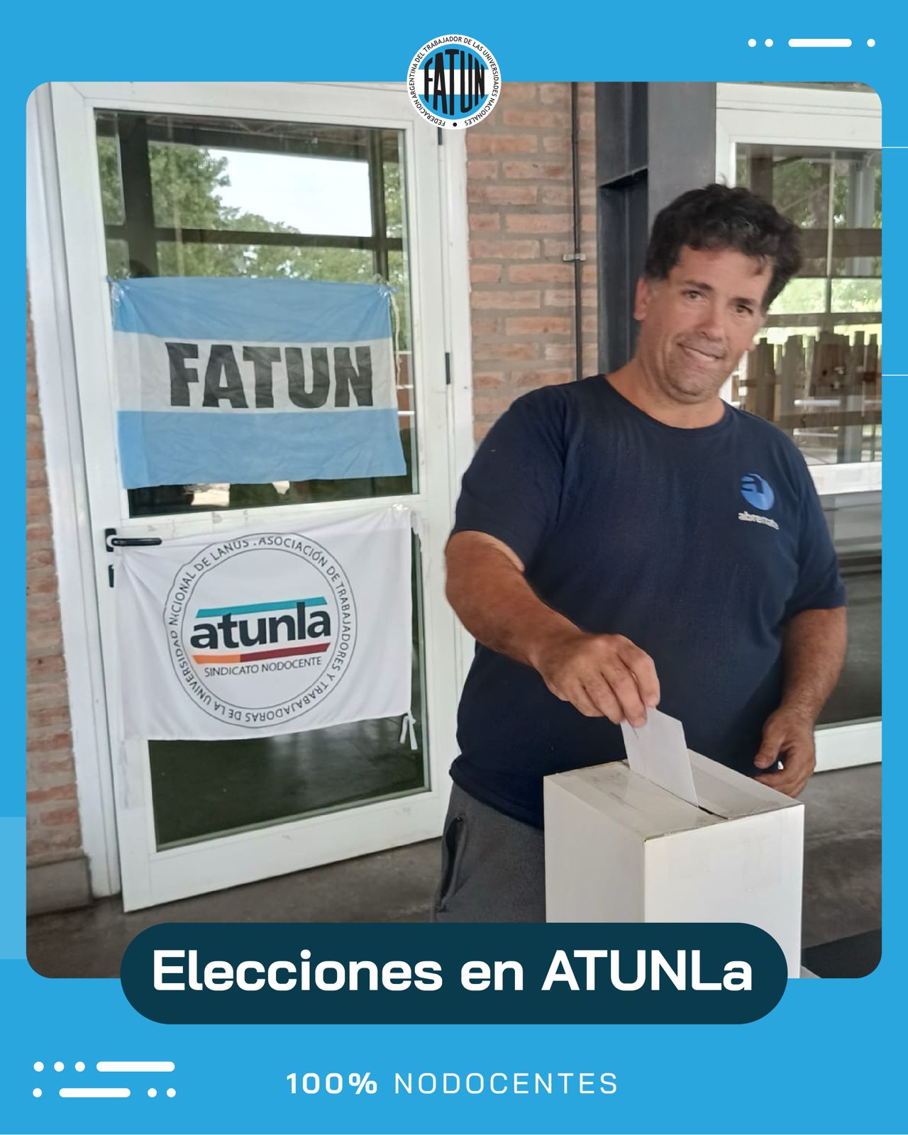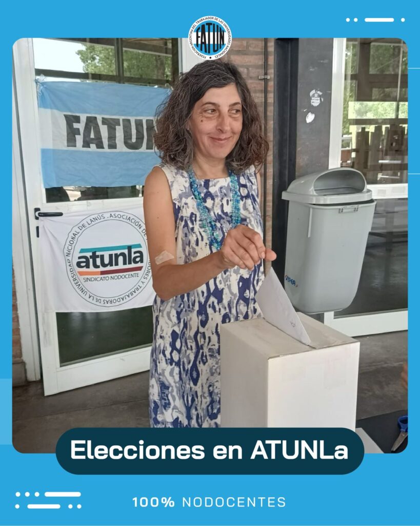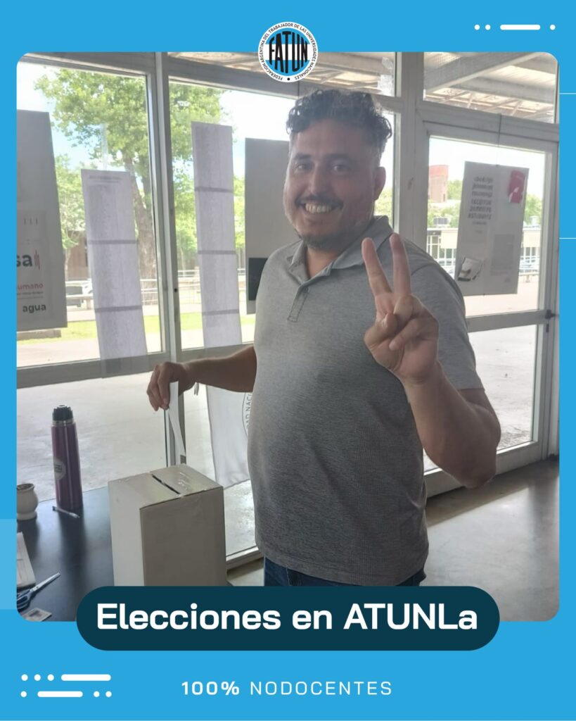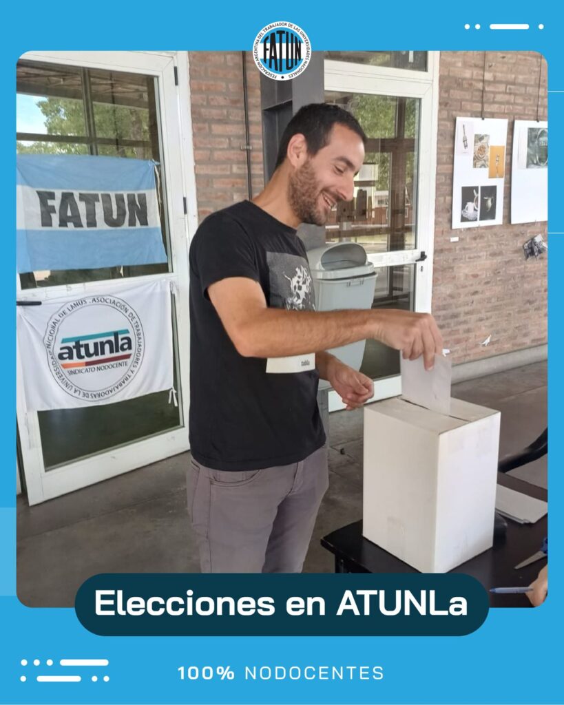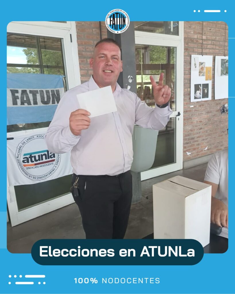 Desde la FATUN, felicitamos por su gran triunfo (95,5 %) en las elecciones para la Comisión Directiva y Comisión Revisora de Cuentas de la Asociación de Trabajadores y Trabajadoras de la Universidad Nacional de Lanús para el período 2025-2029, a las/os Compañeras/os, pertenecientes a la Lista “26 de Noviembre” encabezada por el Secretario General, Cro. Julián Di Silvestro y toda su comisión directiva.
