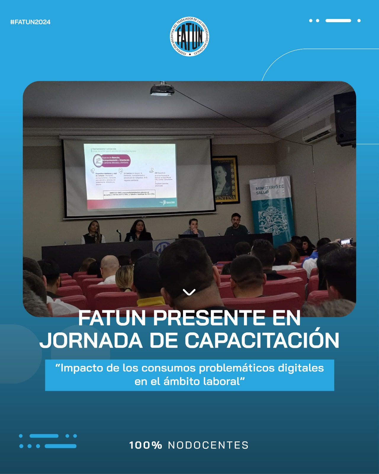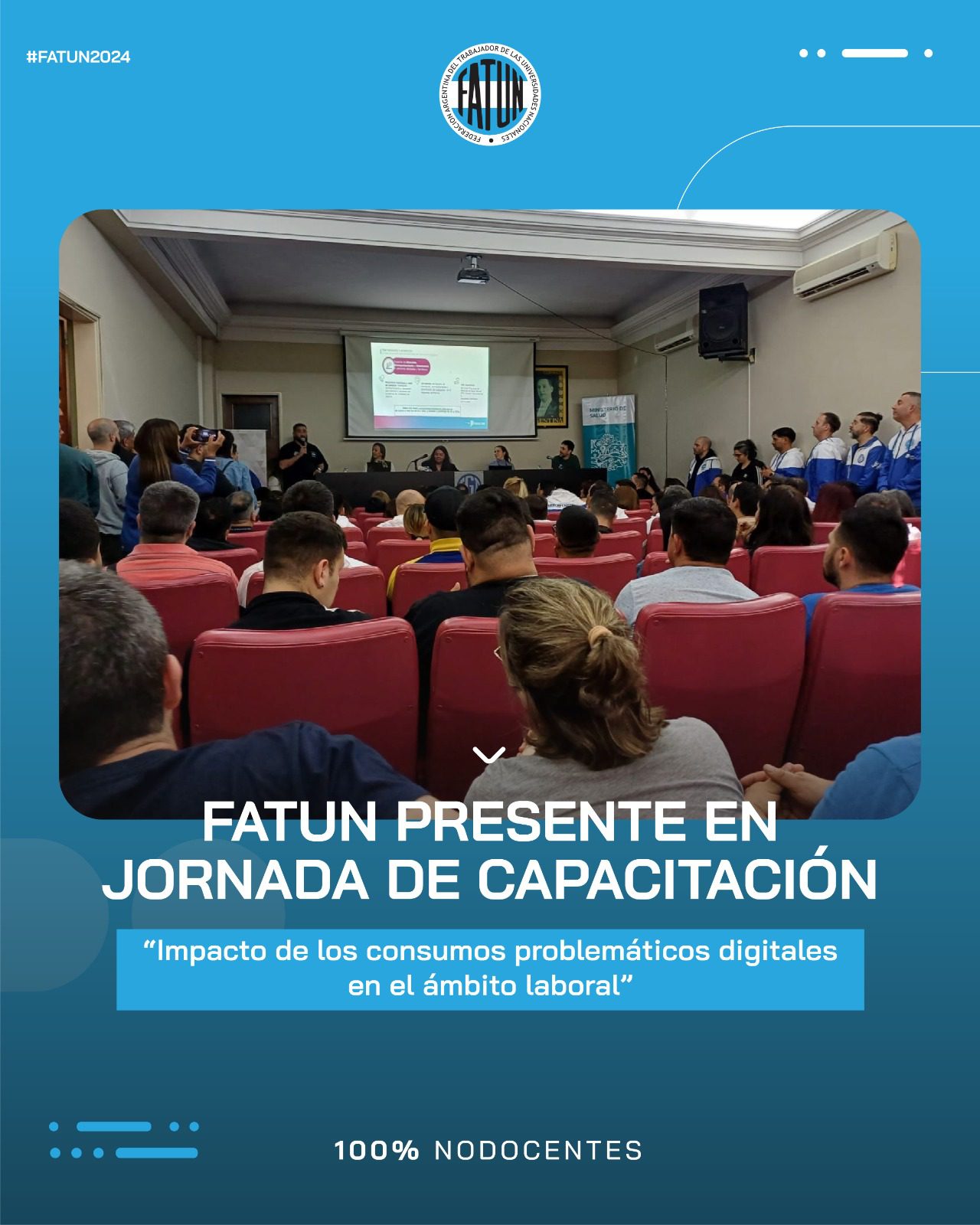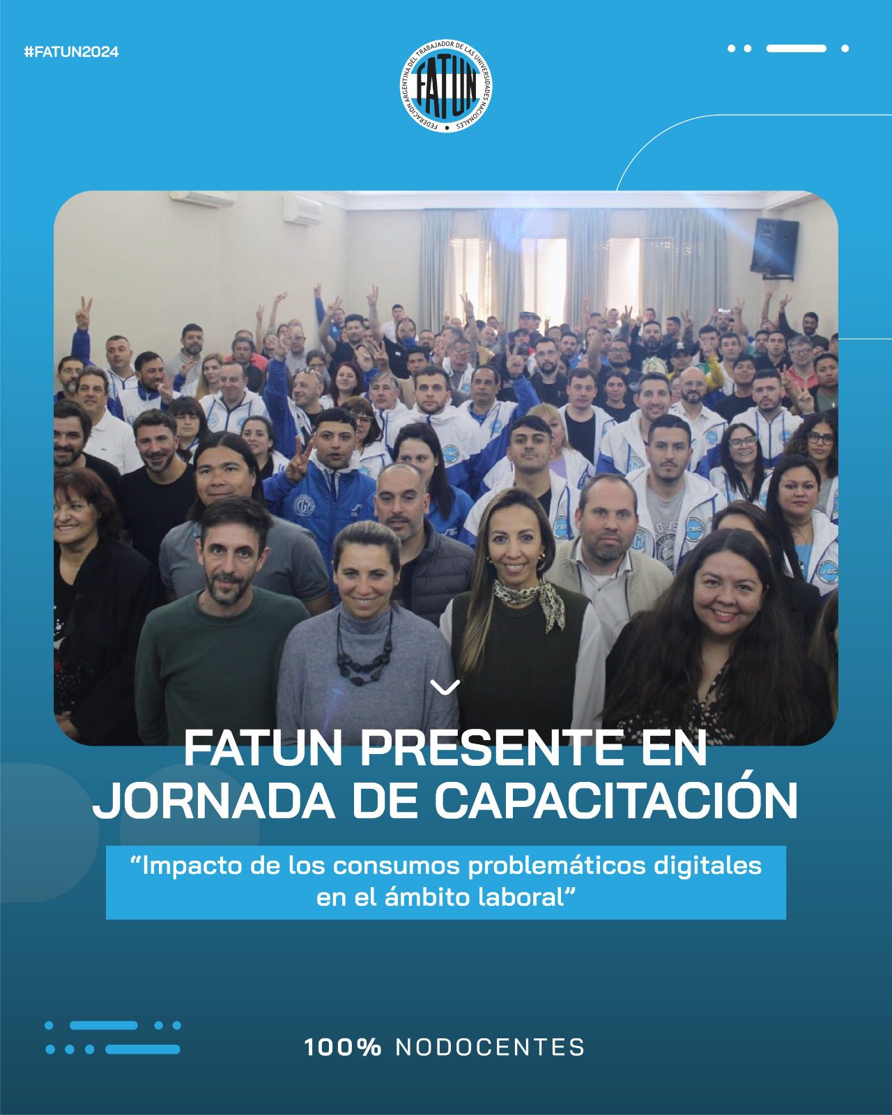 En el día de ayer, por indicación de nuestro Sec. General Cro. Walter Merkis, nuestra Secretaria de Juventud, Cra. Marcedes Maffeo, participó junto a compañeras y compañeros de ATUNAJ y ATUNLu, de una jornada de capacitación sobre el “Impacto de los consumos problemáticos digitales en el ámbito laboral y estrategias de cuidados”.