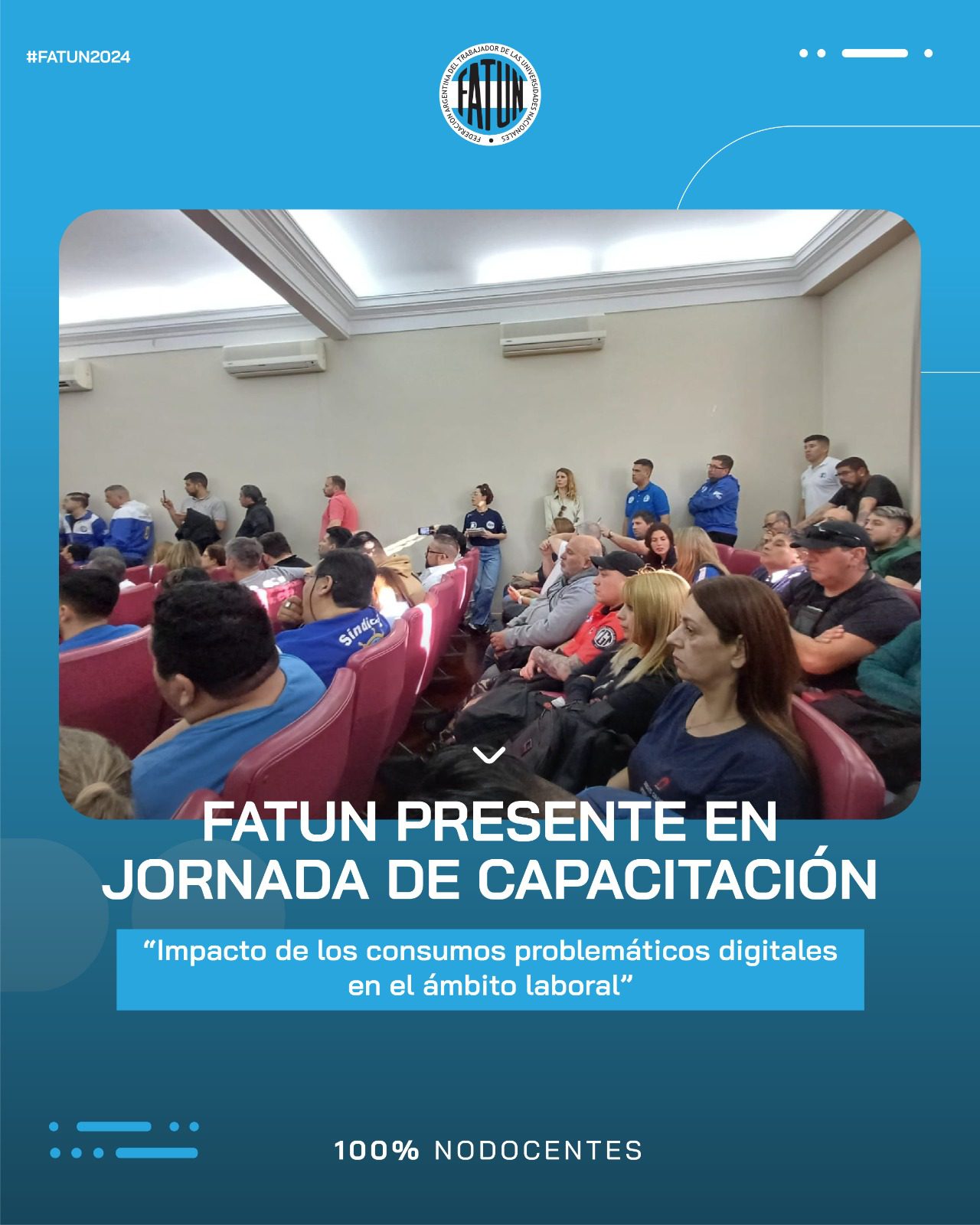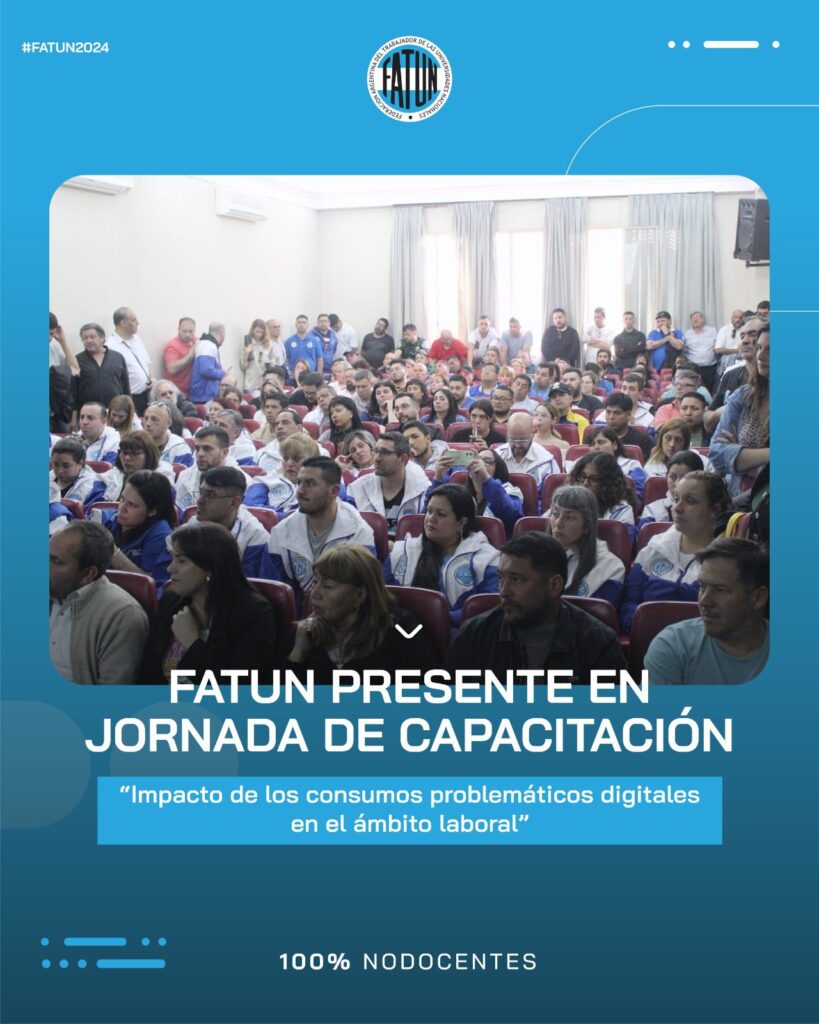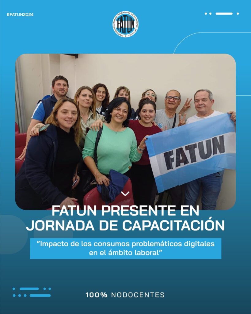 En el día de ayer, por indicación de nuestro Sec. General Cro. Walter Merkis, nuestra Secretaria de Juventud, Cra. Marcedes Maffeo, participó junto a compañeras y compañeros de ATUNAJ y ATUNLu, de una jornada de capacitación sobre el “Impacto de los consumos problemáticos digitales en el ámbito laboral y estrategias de cuidados”.