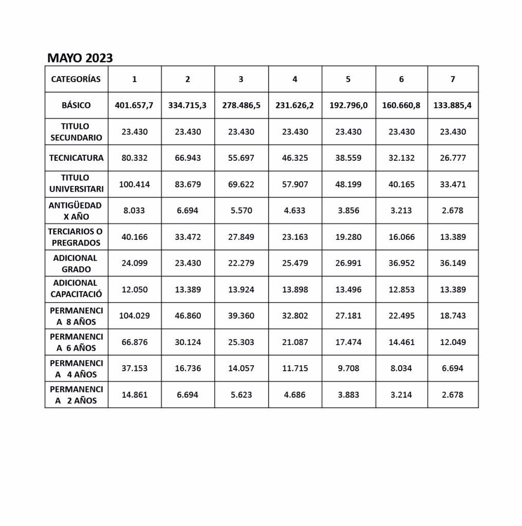Grillas Pauta Salarial Marzo-Junio 2023