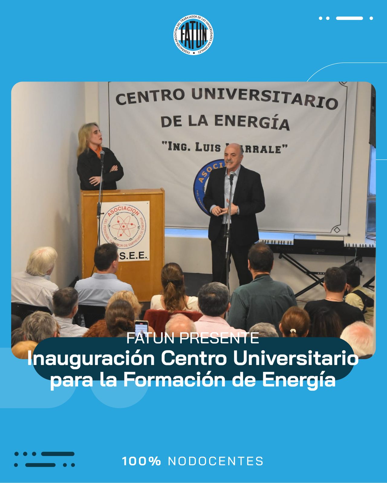 El pasado viernes, por indicación de nuestro Secretario General, Cro. Walter Merkis, estuvieron presentes en la apertura del nuevo Centro Universitario de la Energía “Ingeniero Luis Marrale” perteneciente a la Asociación del Personal Superior de Empresas de Energía (APSEE), la Cra. Susana Ramos, Subsecretaria de Acción Gremial y la Cra. Ana Laura Ruggiero, Subsecretaria de Igualdad de Género de nuestra Federación.
