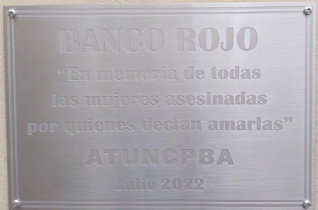 Ayer, viernes 15 de julio, la Asociación de Trabajadores de la Universidad Nacional del Centro de la Provincia de Buenos Aires instaló en su Casa Sindical un Banco Rojo, como símbolo de la lucha contra la violencia de género y los femicidios, junto a una placa conmemorativa.