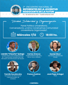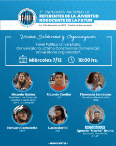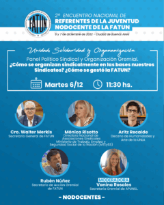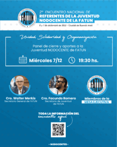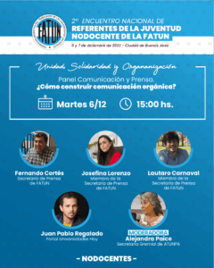 En el marco del 2º Encuentro Nacional de Jóvenes Referentes NODOCENTES de la FATUN, compartimos información sobre los paneles que se desarrollarán, sus expositores y moderadores.
