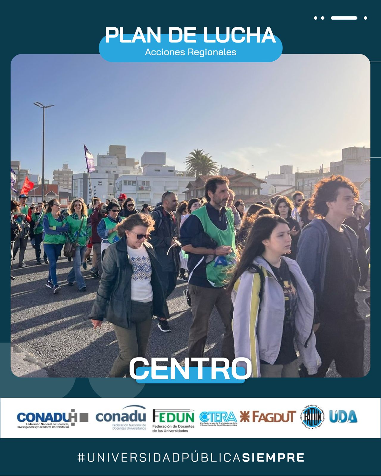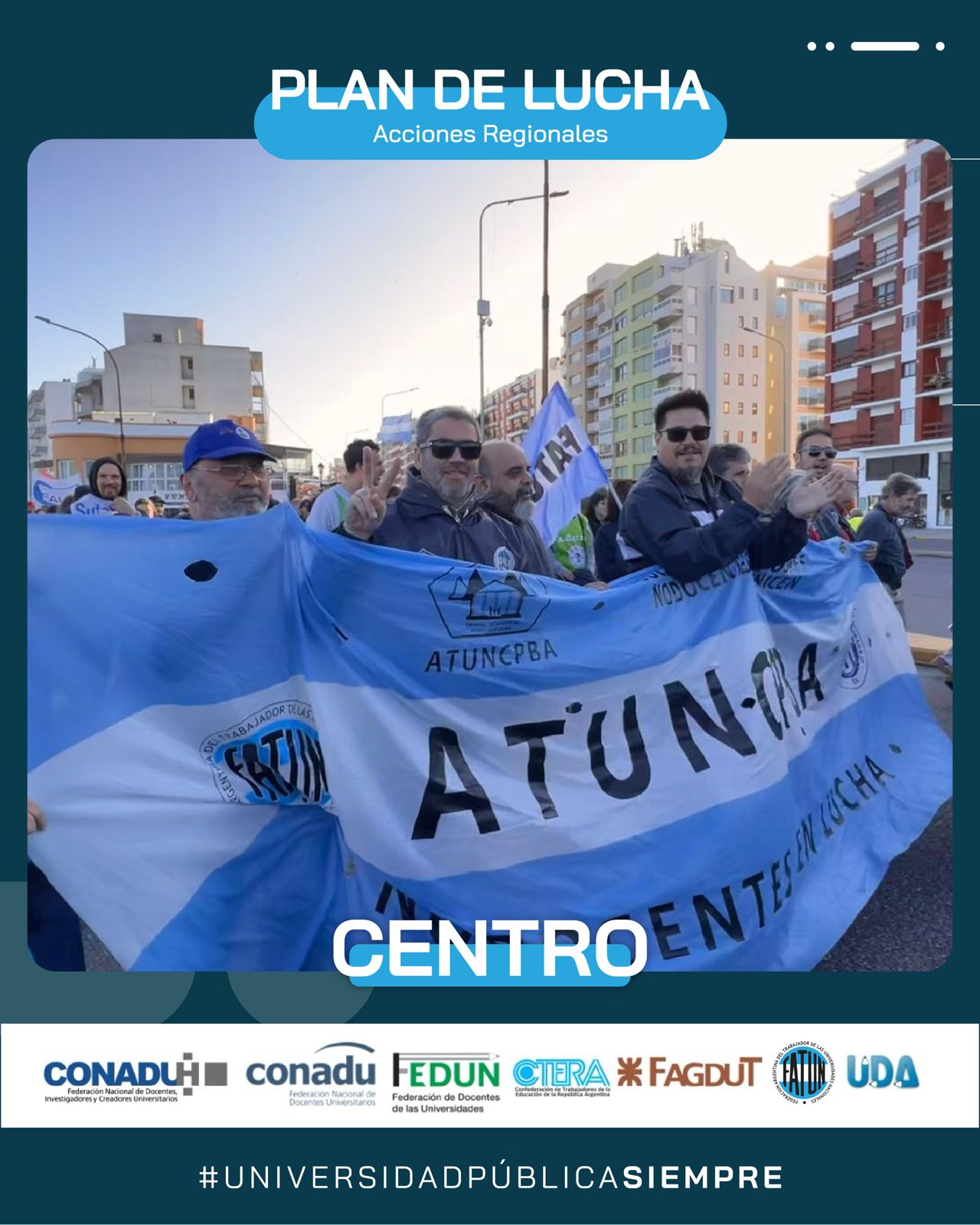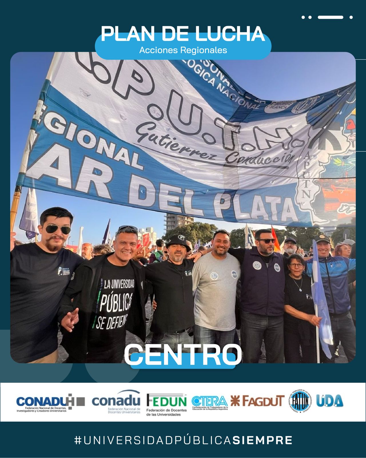 Ayer se llevó a cabo. en la ciudad de Mar del Plata, la Marcha Regional de Universidades de la Región Centro, en defensa de la Universidad Pública. Por indicación de nuestro Secretario General, Cro. Walter Merkis, asistieron en representación de la FATUN el Secretario de Organización, Cro. Mauricio D’Alessandro, y el Secretario del Interior, Cro. José Ojeda, junto al Consejero Directivo, Cro. Jorge Mendoza, quienes fueron recibidos por la Secretaria General de la APU Mar del Plata, Cra. Victoria Schadwill.