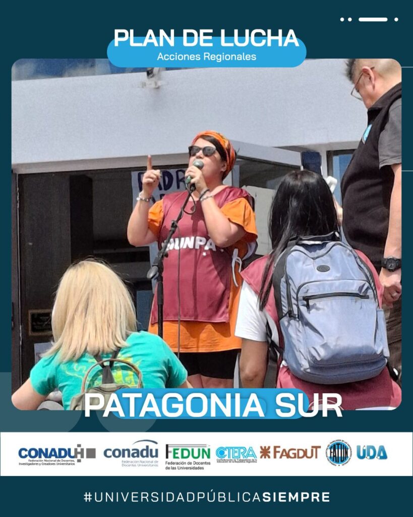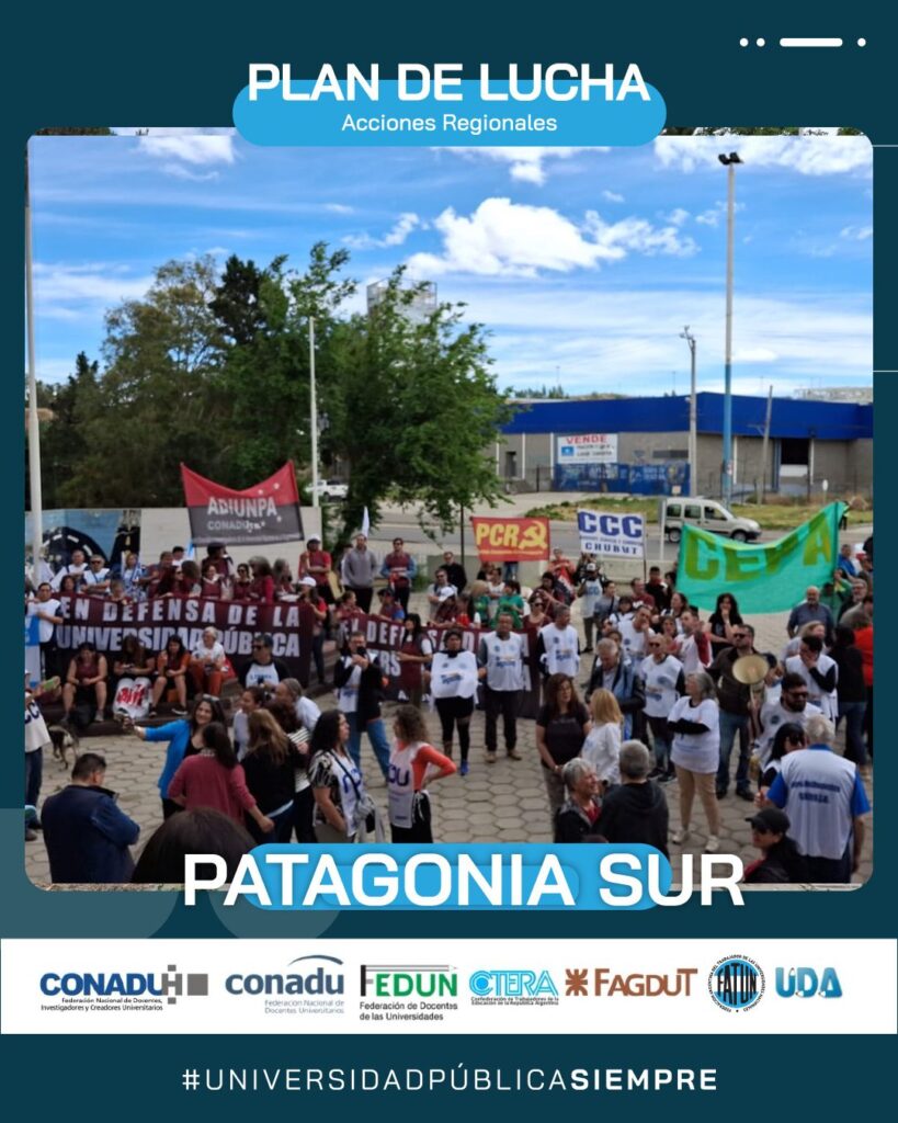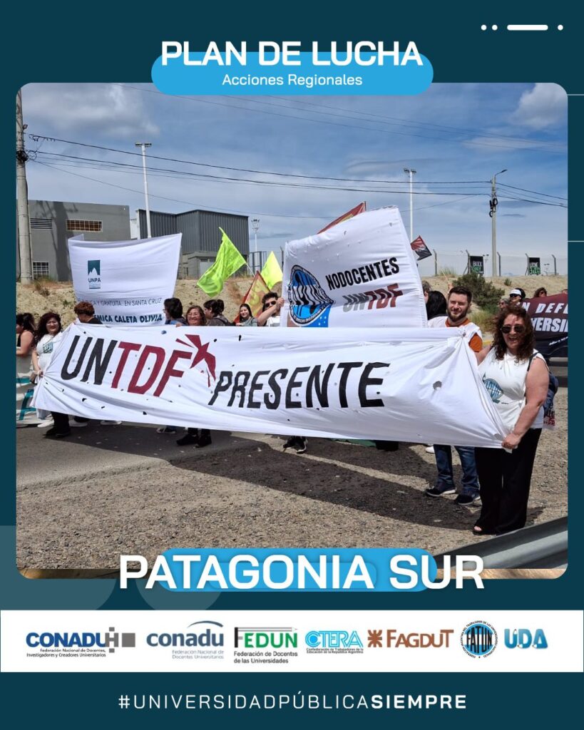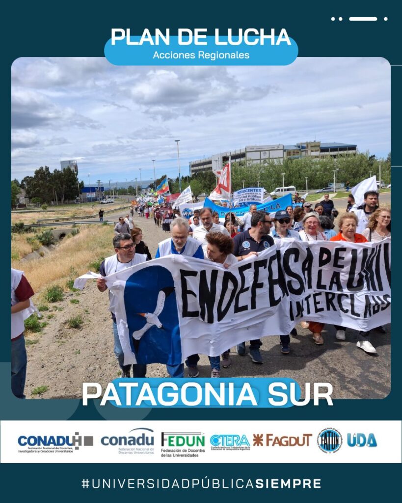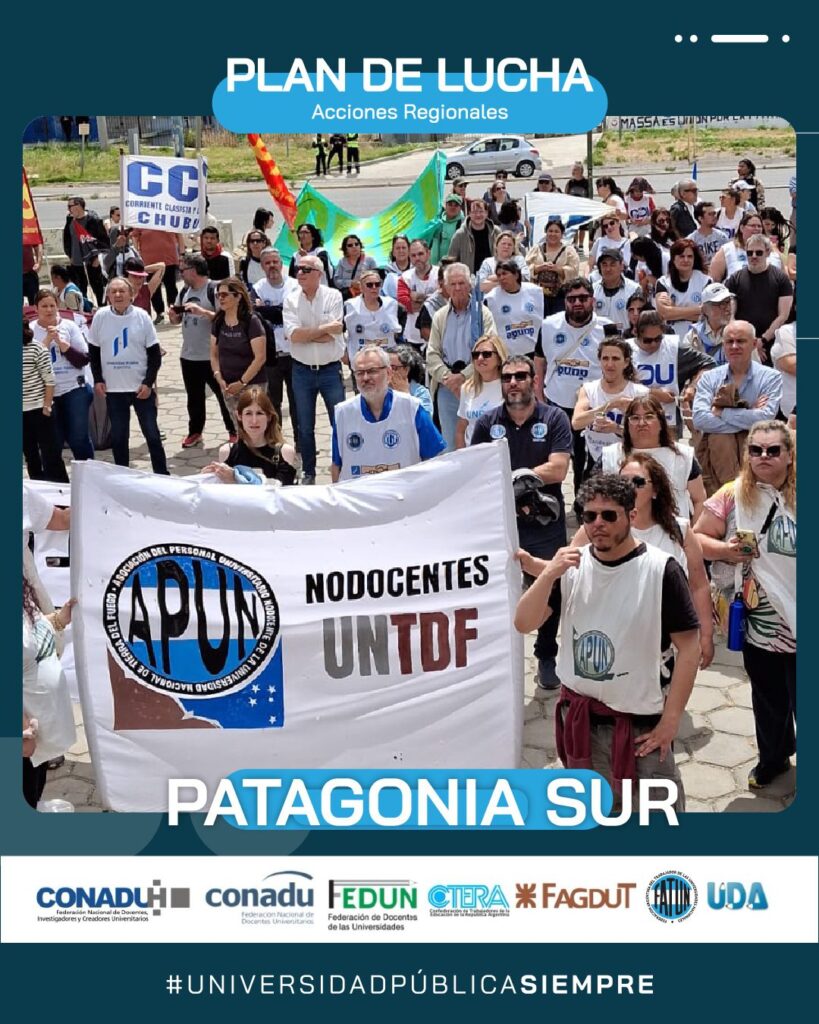 En el día de hoy, continuando con el Plan de Lucha Federal por regiones que decidiera el Frente Sindical de Universidades Nacionales, se realizó la marcha en la Región Patagonia Sur (UNPA, UNPSBJ, UNTDF, UTN), en la ciudad de Comodoro Rivadavia, provincia de Chubut.