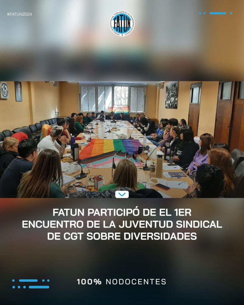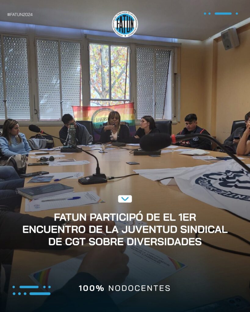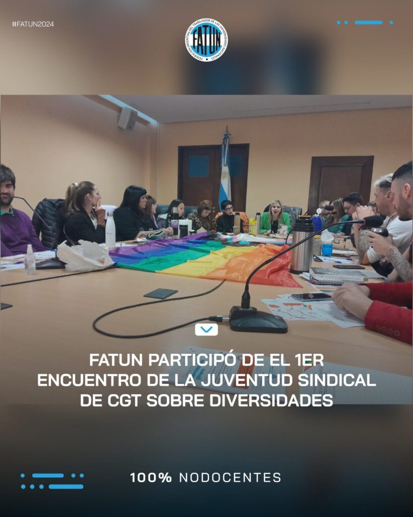 En el día de ayer, por indicación de nuestro Secretario General, Cro. Walter Merkis; participaron la Subsecretaria de Género, Cra. Ana Laura Ruggiero; y la Secretaria de Juventud, Cra. Mercedes Maffeo de la FATUN, del primer encuentro llevado a cabo por la Juventud Sindical de la CGT sobre «DIVERSIDADES».