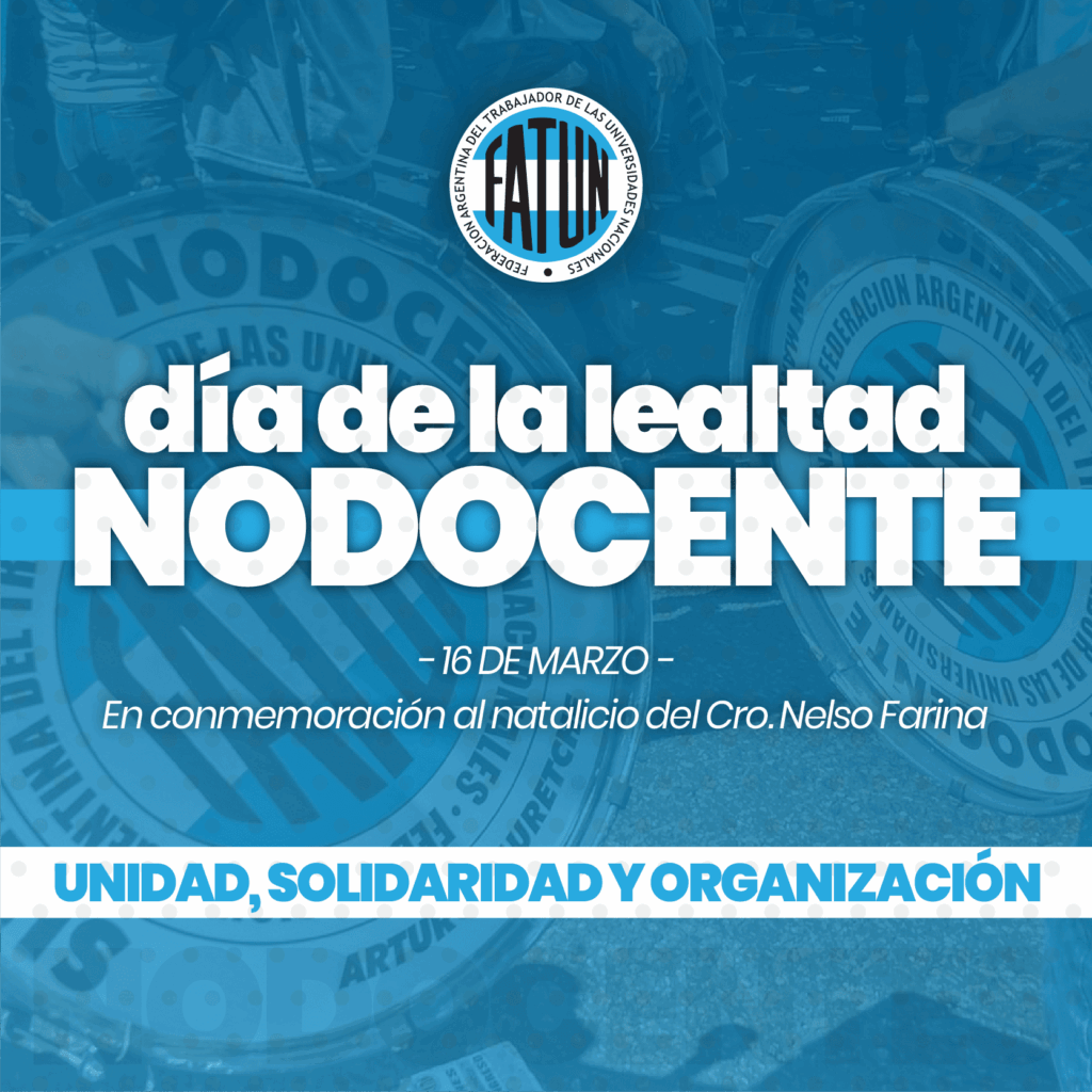 En conmemoración del natalicio de quien fuera, durante más de 30 años, Secretario General de la Federación Argentina de los Trabajadores de las Universidades Nacionales, el Cro. Nelso Farina, celebramos hoy el Día de la Lealtad NODOCENTE. De la mano de la actual conducción del Cro. Walter Merkis, que continúa con el proyecto histórico de […]