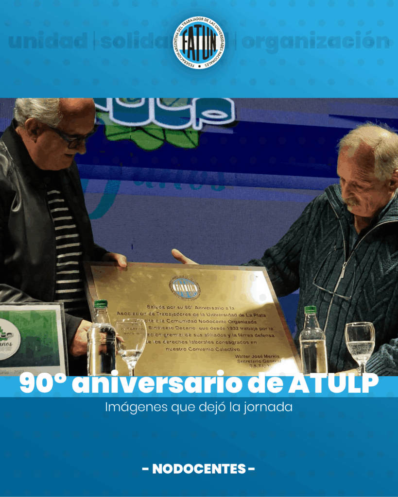 Se llevaron a cabo, el pasado miércoles las elecciones para la Renovación de Representantes del Claustro NODOCENTE en la Universidad Nacional de La Plata. La Lista Verde “UNIDAD NODOCENTE”, organizada por la ATULP, resultó victoriosa y seguirá representando a las compañeras y compañeros de dicha Universidad. Desde la FATUN, felicitamos al Secretario General, Cro. Raúl […]